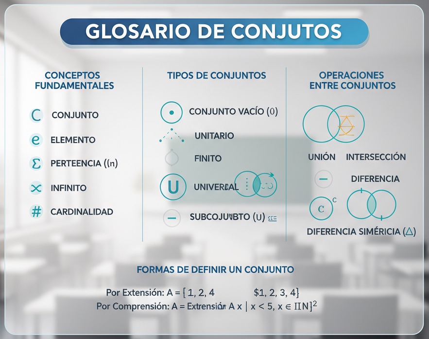 Operación: Acción matemática (unión, resta, etc.) que se realiza entre conjuntos para obtener un resultado.